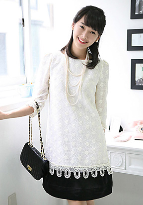 [로즈리아]레이온 장미자수&수입실크 원피스