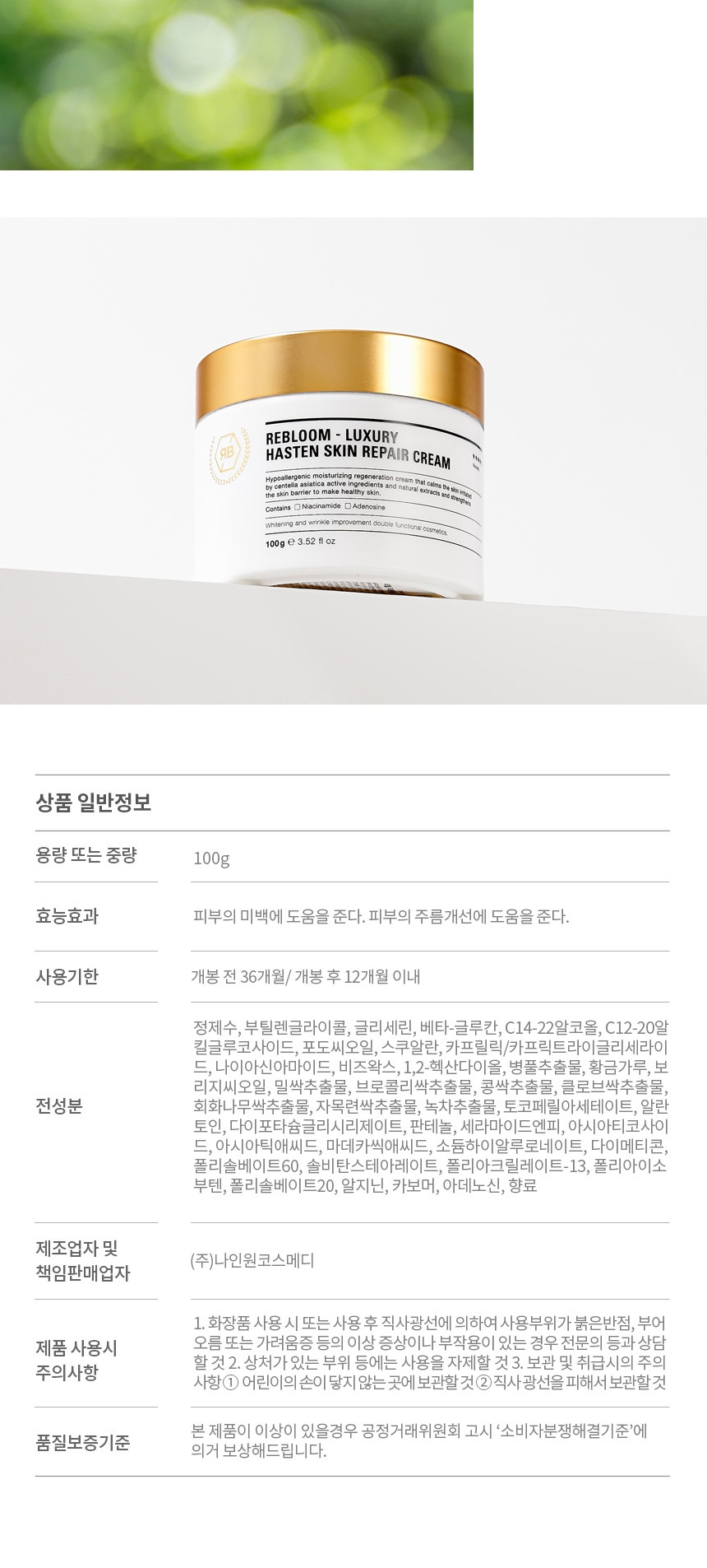 [리블] 헤이슨 스킨 리페어 크림100g