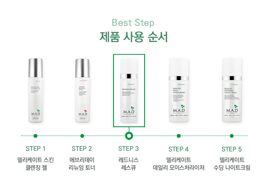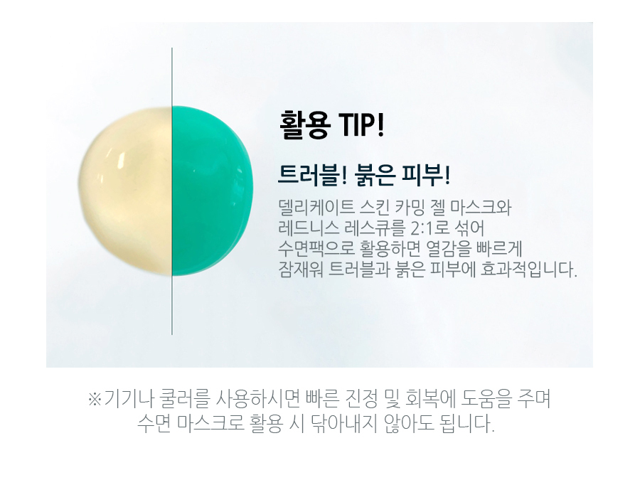 레드니스 레스큐와 델리케이트를 믹스해서 팩을 해주세요